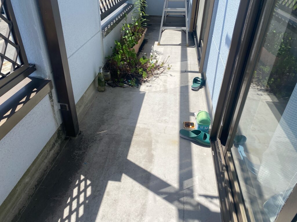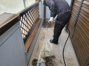 西尾市、ベランダFRP防水苔が酷い。高圧洗浄により苔を除去✨