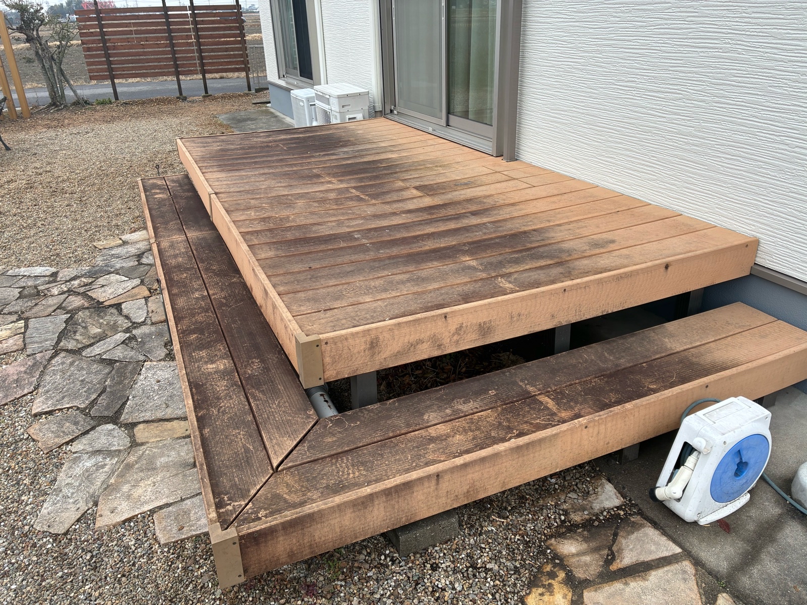 サービス施工 ウッドデッキ 黒ずみ汚れ 高圧洗浄でスッキリ