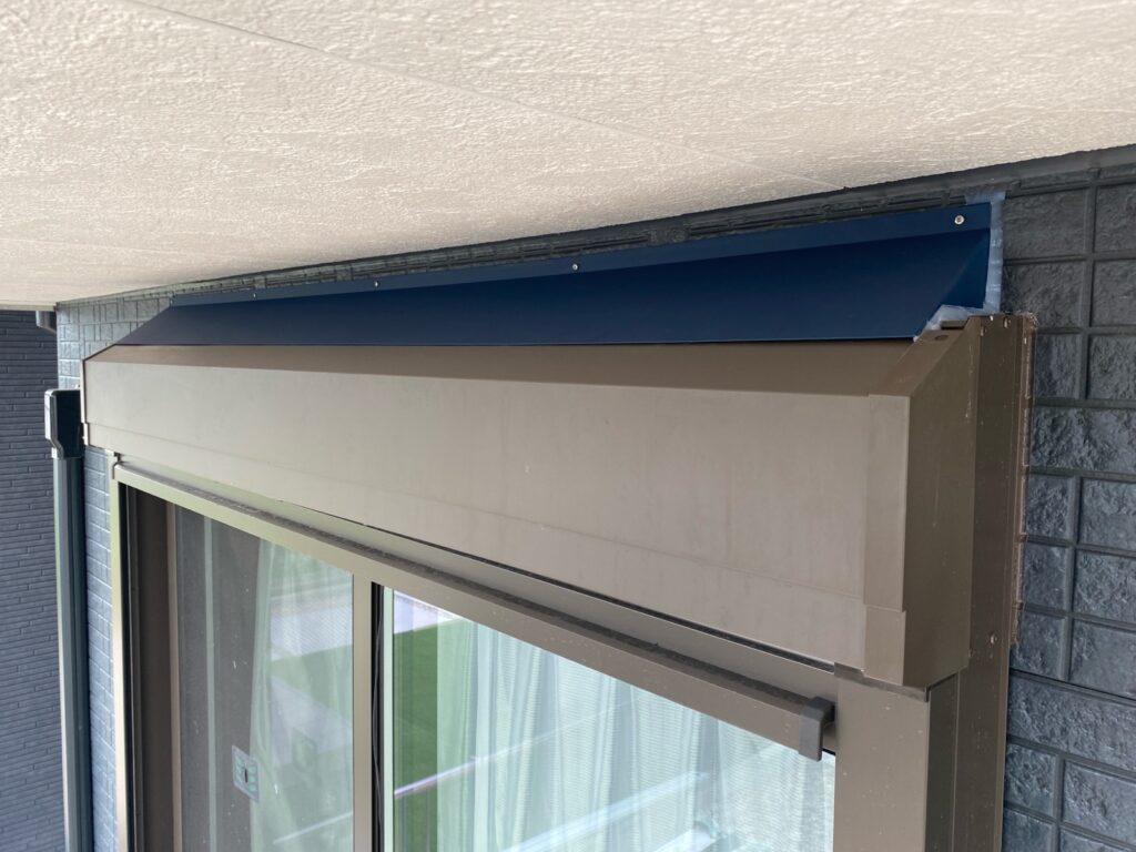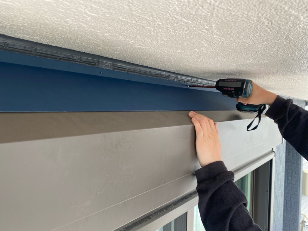 シャッターBOXのサイズに加工した板金をシャッターBOX上に設置します。