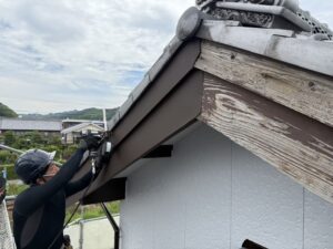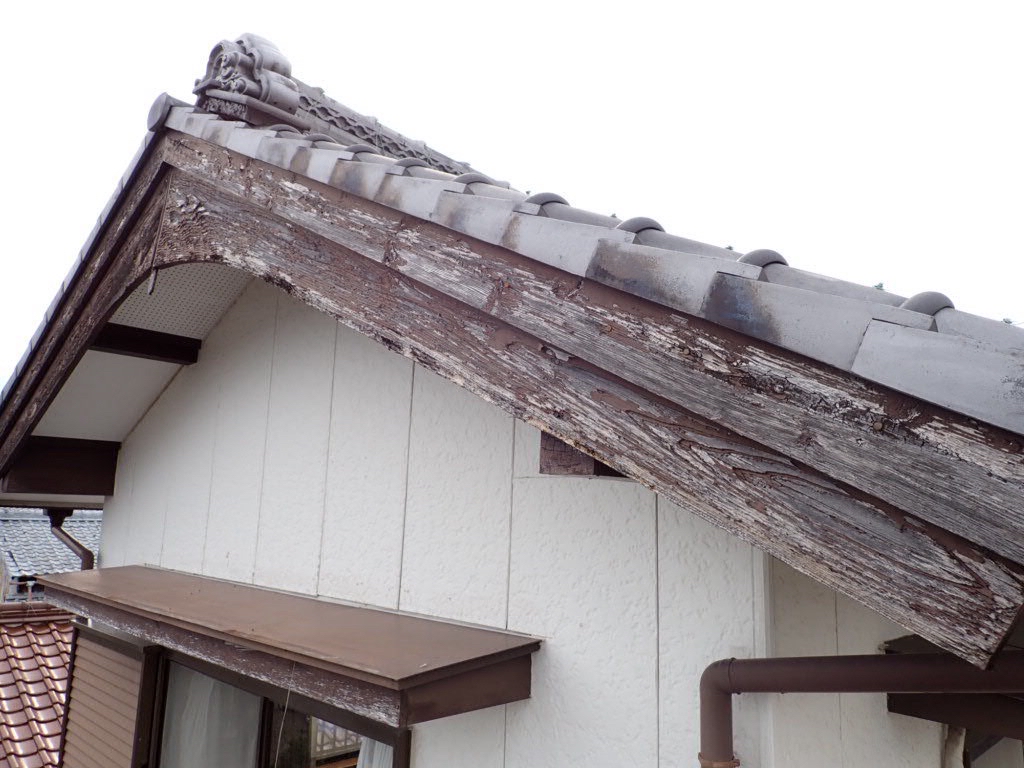 西尾市 築40年 木製破風板 中度の劣化はカバー工法で補修