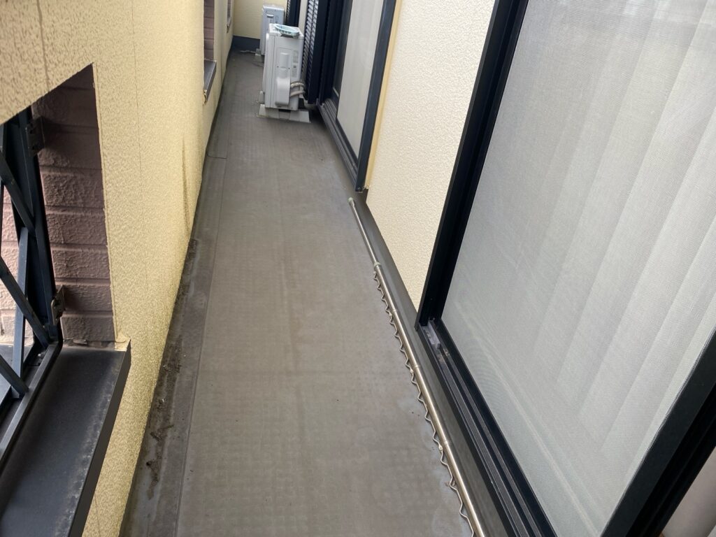 塩ビシートの上から保護塗装をすることで防水層を守ることが出来、ベランダ床を保護します👌
