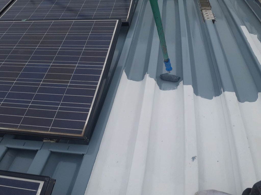 外壁 超低汚染リファイン1000Si-IR(アステック)8106ソルトブッシュ(艶有) 屋根 スーパーシャネツサーモSi(アステック)9110クレタグレー 軒天 スーパーフッソコート(澤政興業)黒 玄関軒天 溶剤ケンエース(日本ペイント)22-30B 付帯、パラペット スーパーフッソコート(澤政興業)黒 基礎壁 シリコン浸透ガード(日本ペイント)モルタルグレー |