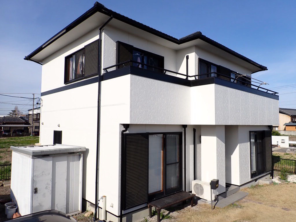 【外壁】スーパーラジカルシリコンGH(アステック)22-85A 【軒天】溶剤系ケンエース(日本ペイント)N-90 【化粧板】スーパーフッソコート(澤政興業)黒 【その他付帯】スーパーフッソコート(澤政興業)黒 【ベランダ床】水性FRPトップ(カナエ化学))グレー |