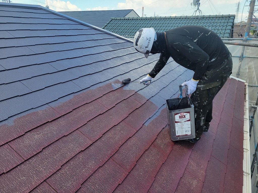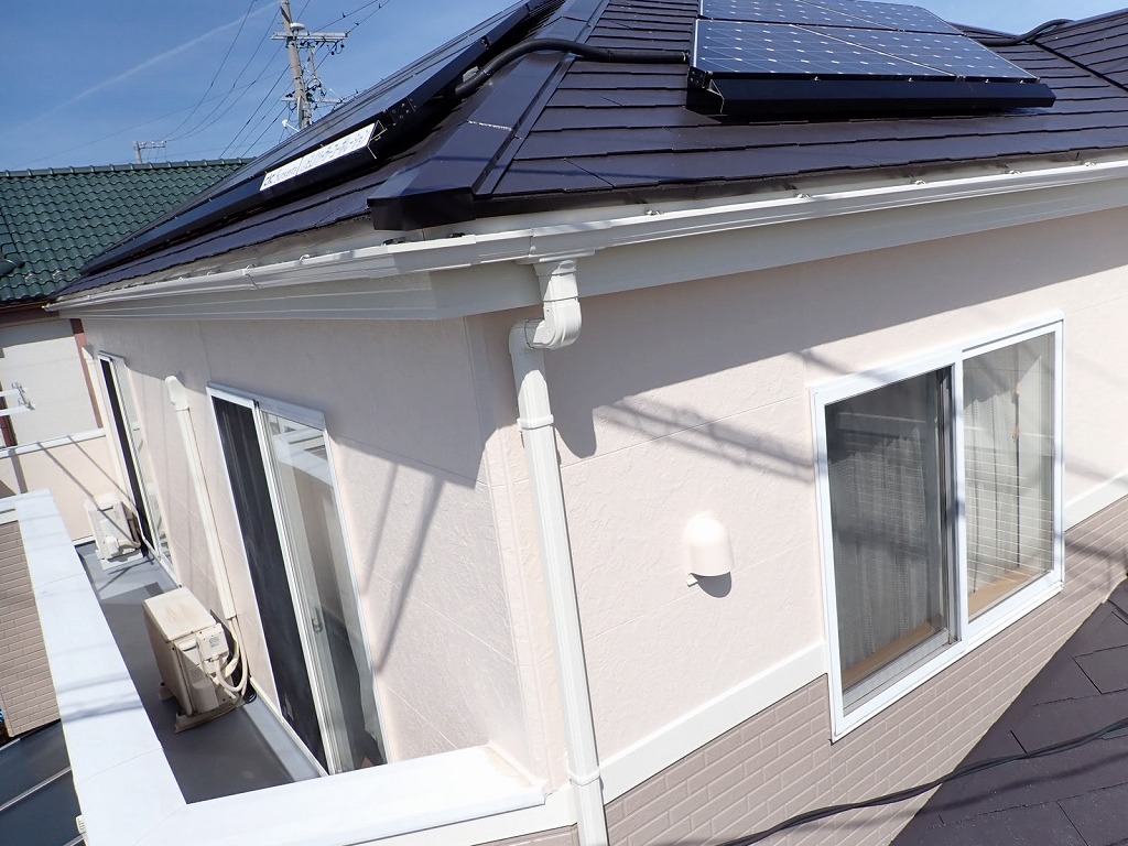 【外壁】超低汚染リファイン1000無機ーIR(アステック)1F 8083ベイジュ、2F 9019フォギーオレンジ(艶有) 【屋根】スーパーシャネツサーモF(アステック)9114キャビアブラウン 【軒天】溶剤系ケンエース(日本ペイント)N-90 【付帯】スーパーフッソコート(澤政興業)377 【基礎壁】シリコン浸透ガード(日本ペイント)モルタルグレー 【ベランダ床】水性FRPトップ(カナエ化学)グレー |