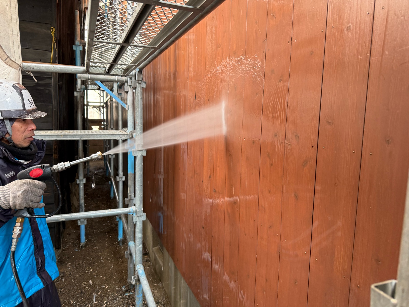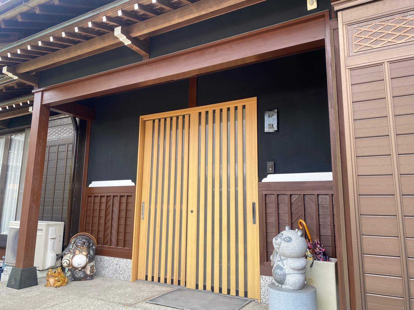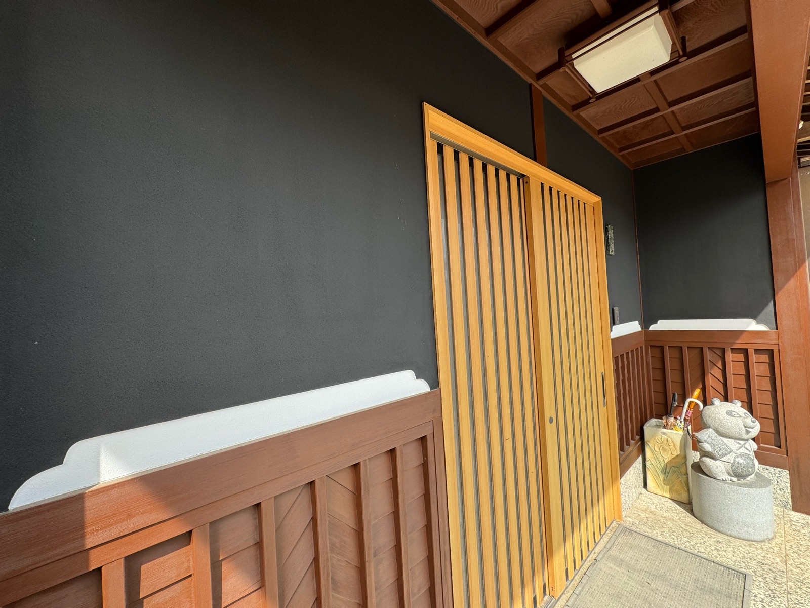 この度は村井塗装へご依頼くださり 誠にありがとうございます。 OB様よりご紹介いただきましたW様邸。 木をふんだんに使用した趣のある和風住宅。 板張り外壁は、色剥げ・色褪せ・苔の繁殖等が見られたらメンテナンスのサインです。 木は呼吸(膨張・収縮を繰り返す)をするため 通常のサイディング外壁に塗る塗料ではひび割れや剥がれが生じやすくなるため、 木部専用塗料を使用します。 使用塗料は キシラデコール(浸透系)木材保護塗料の定番で信頼のある商品です。 木目を生かし自然な風合いを保ちながら、防腐・防カビ・防虫効果を発揮! 木材の呼吸を妨げないため、塗膜の割れや膨れ、剥がれが起きにくいのが特徴です。 外壁の他に破風、玄関廻りの木部へもキシラデコールを塗布。 1回、2回、3回と塗り重ねて 色調のばらつきやムラなどを整え、木肌の美しさを引き出します。 やはり木目を活かした仕上がりは一気に高級感が増しますね(^_-)-☆ アクセントとなるモルタル部分は、ベージュ系→黒にチェンジしてメリハリをプラス!! 木部本来の温かみはそのままに 格調高い重厚感のある外観になりました! ご自宅以外に多数の物件をお任せくださいましてありがとうございました。 また工事中は職人へ細やかなお気遣いをしていただき重ねてお礼申し上げます。 また何か気になる点などございましたら お気軽にご連絡ください。 本当にありがとうございましたm(__)m |