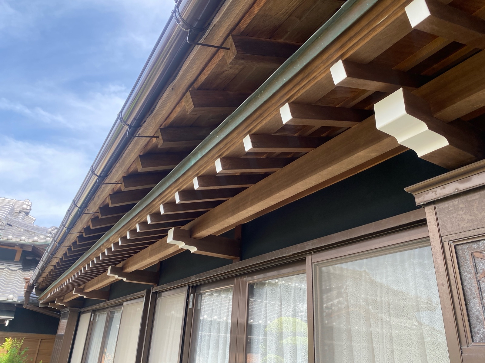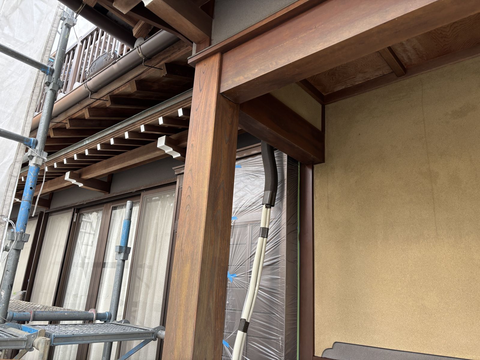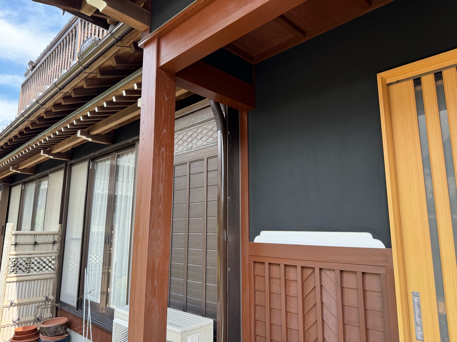 和風住宅外壁木部保護塗装|外壁はチーク、木部付帯はウォルナットを使用