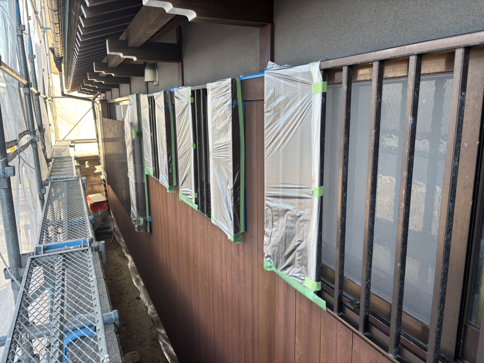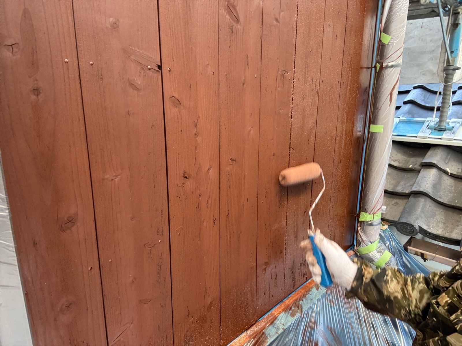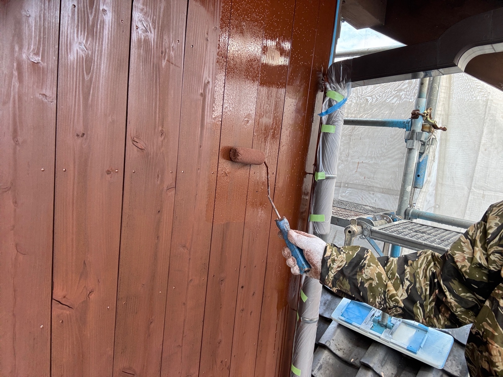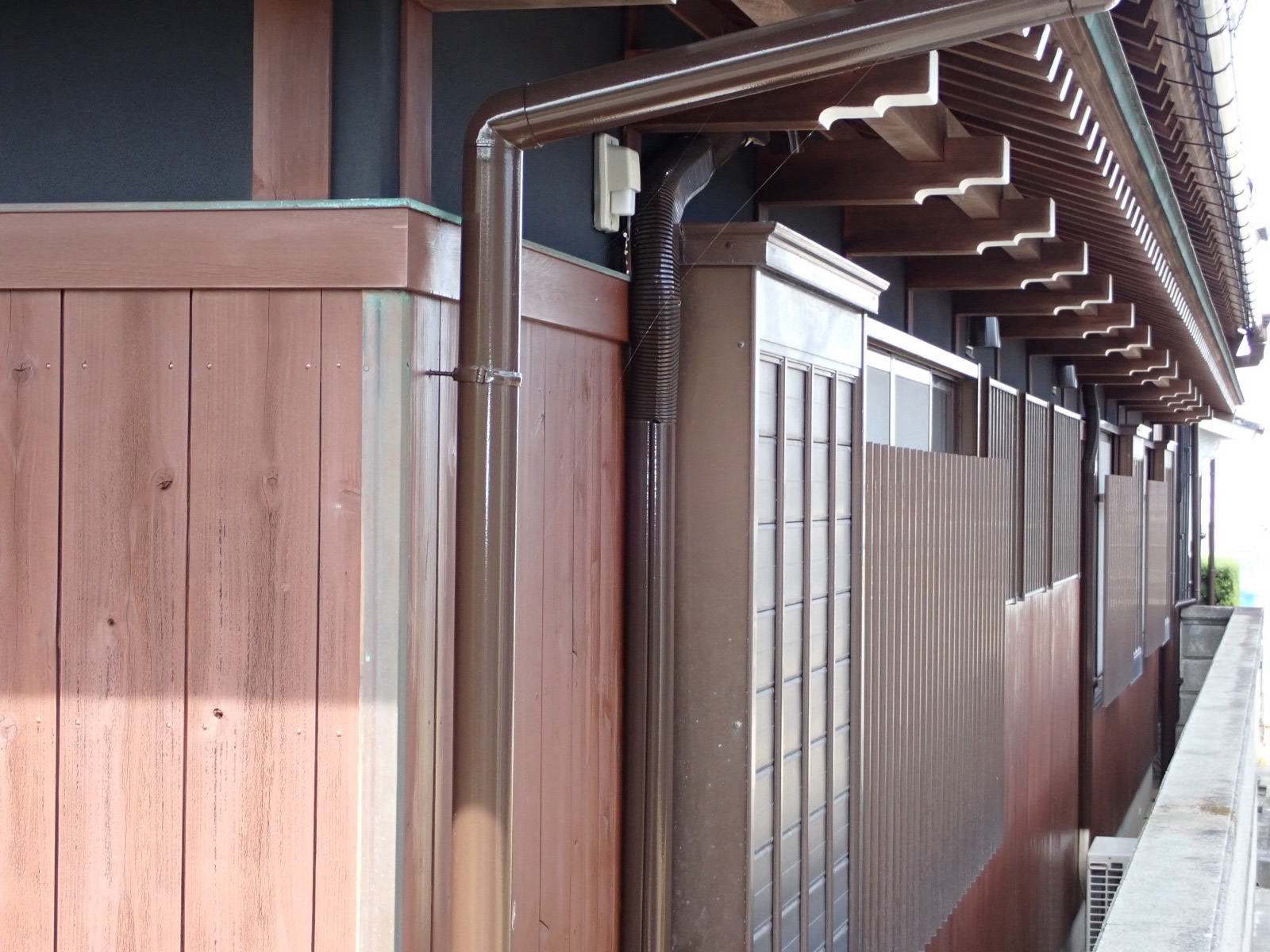 和風住宅外壁木部保護塗装|外壁はチーク、木部付帯はウォルナットを使用