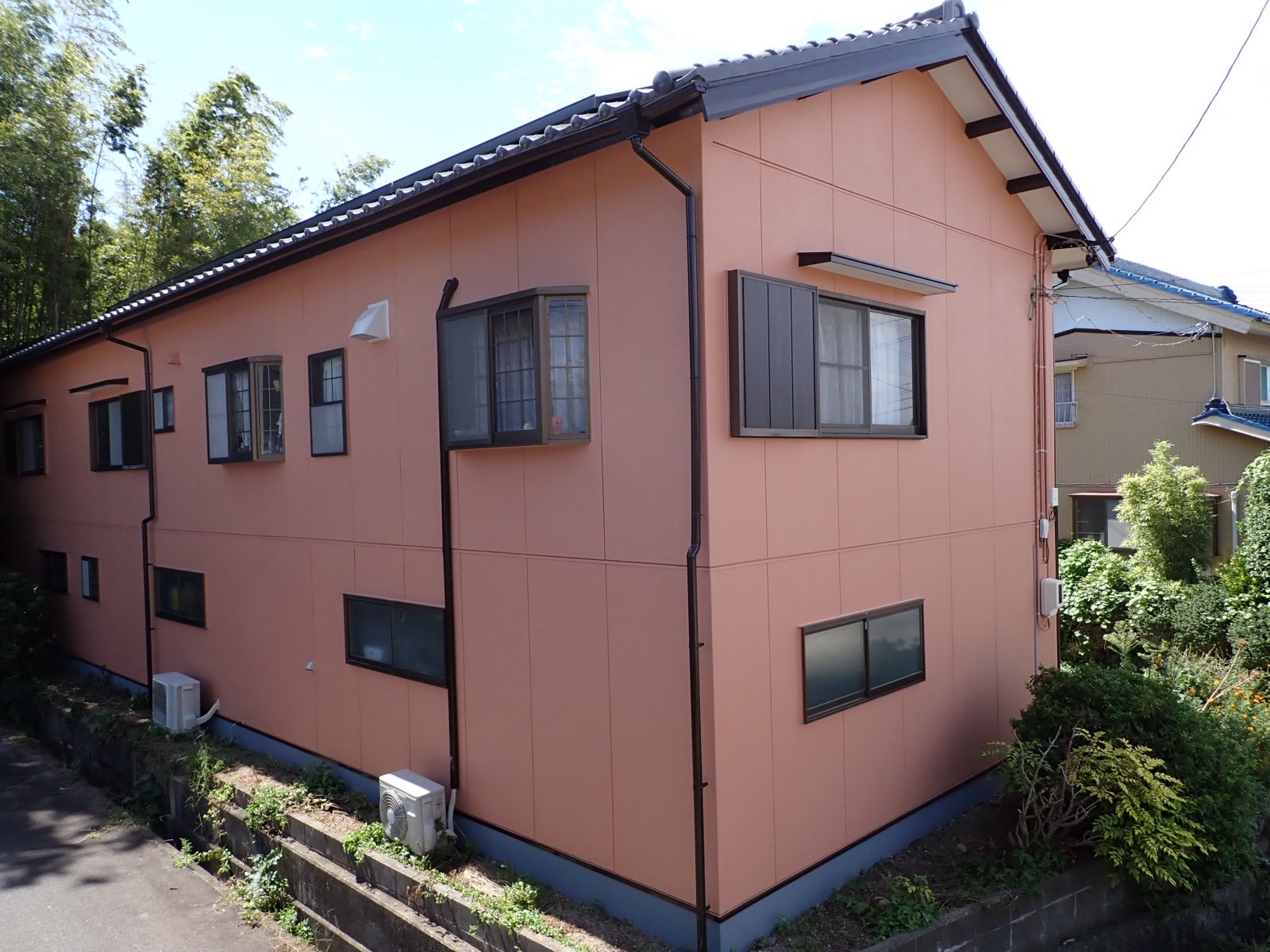 【外壁】超低汚染リファイン1000無機-IR(アステック)8072ワームクレイ(3分艶) 【軒天】溶剤系ケンエース(日本ペイント)N-90 【付帯】スーパーフッソコート(澤政興業)255 【車庫シャッター】スーパーフッソコート(澤政興業)25-70A 【車庫鉄骨】スーパーフッソコート(澤政興業)25-70A |