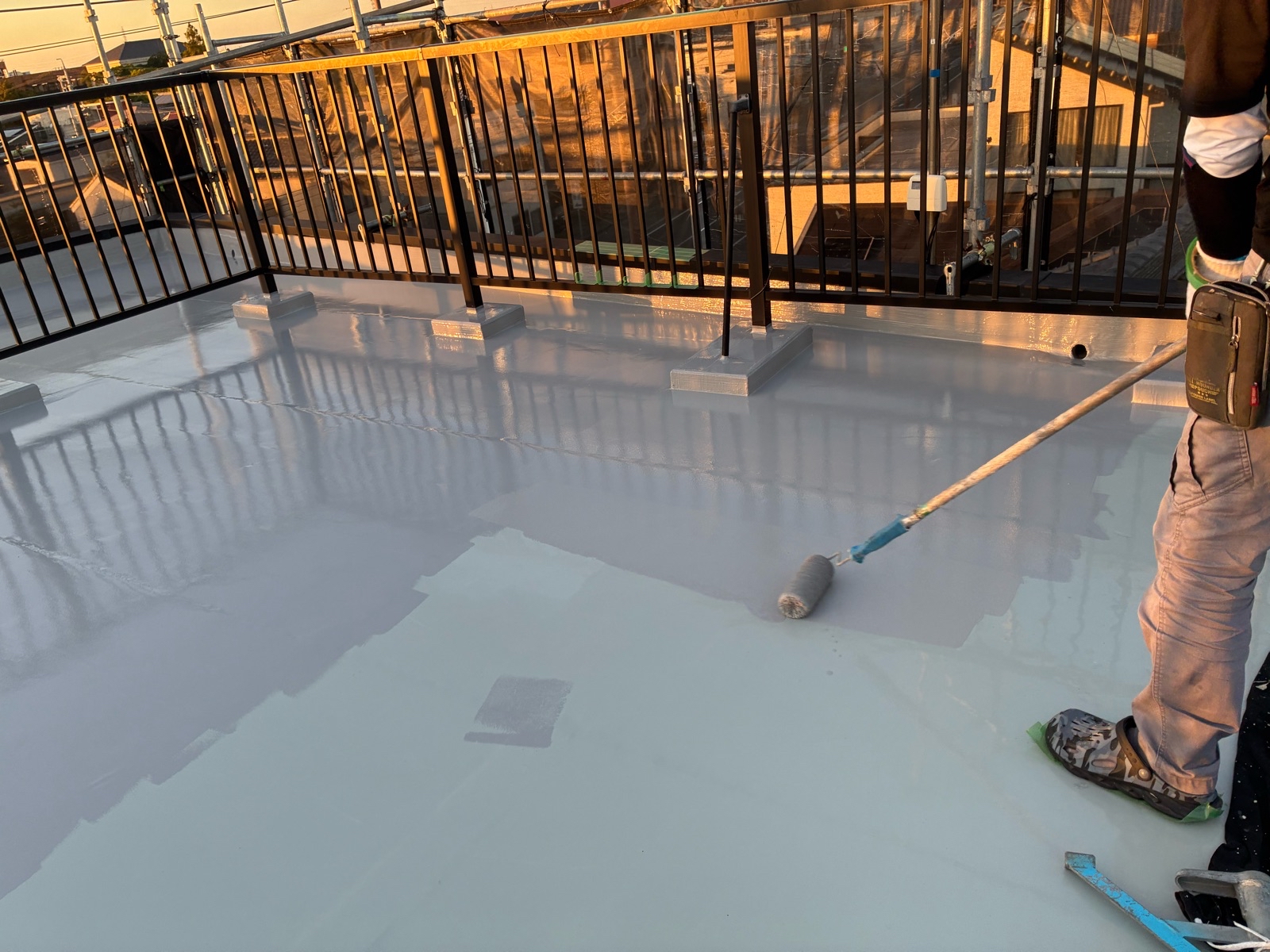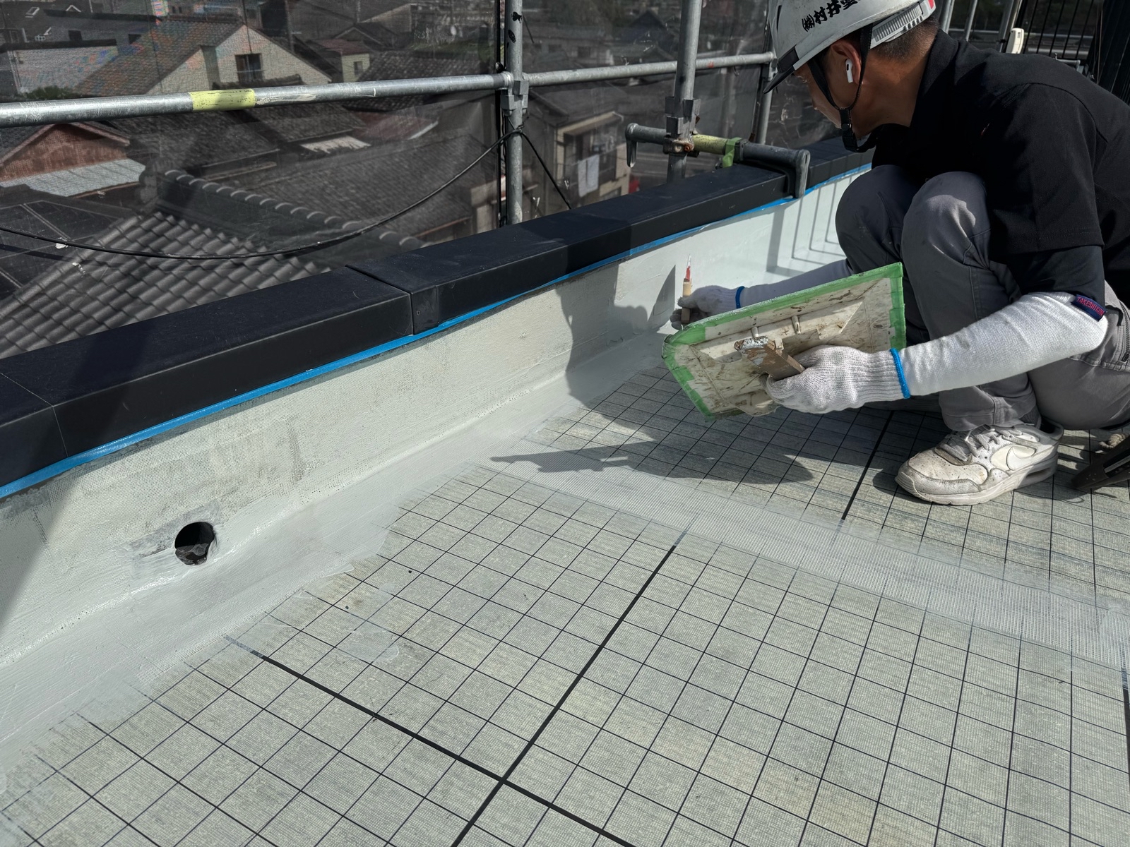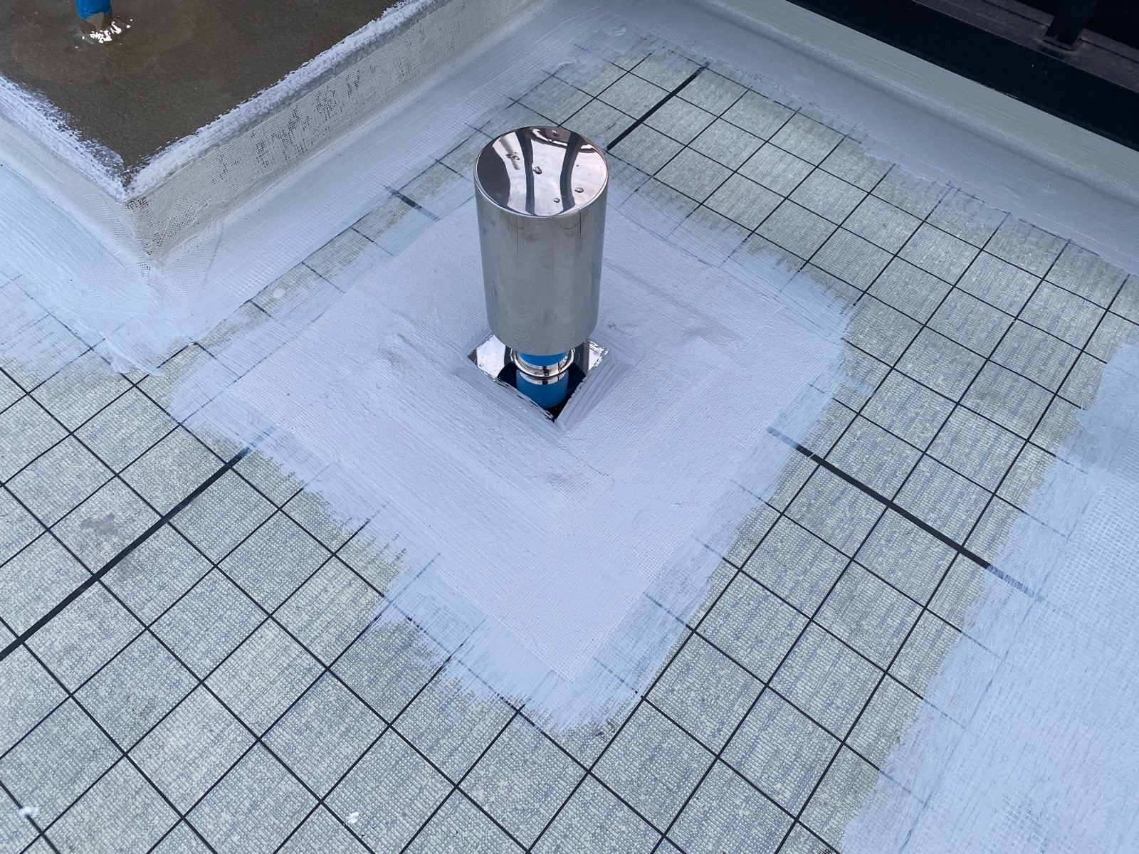 築27年 3階建て住宅アステック無機塗料使用、屋上防水工事通気緩衝シート使用