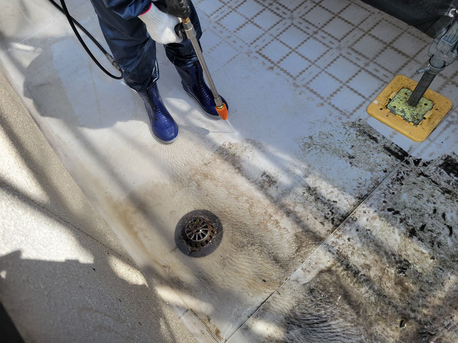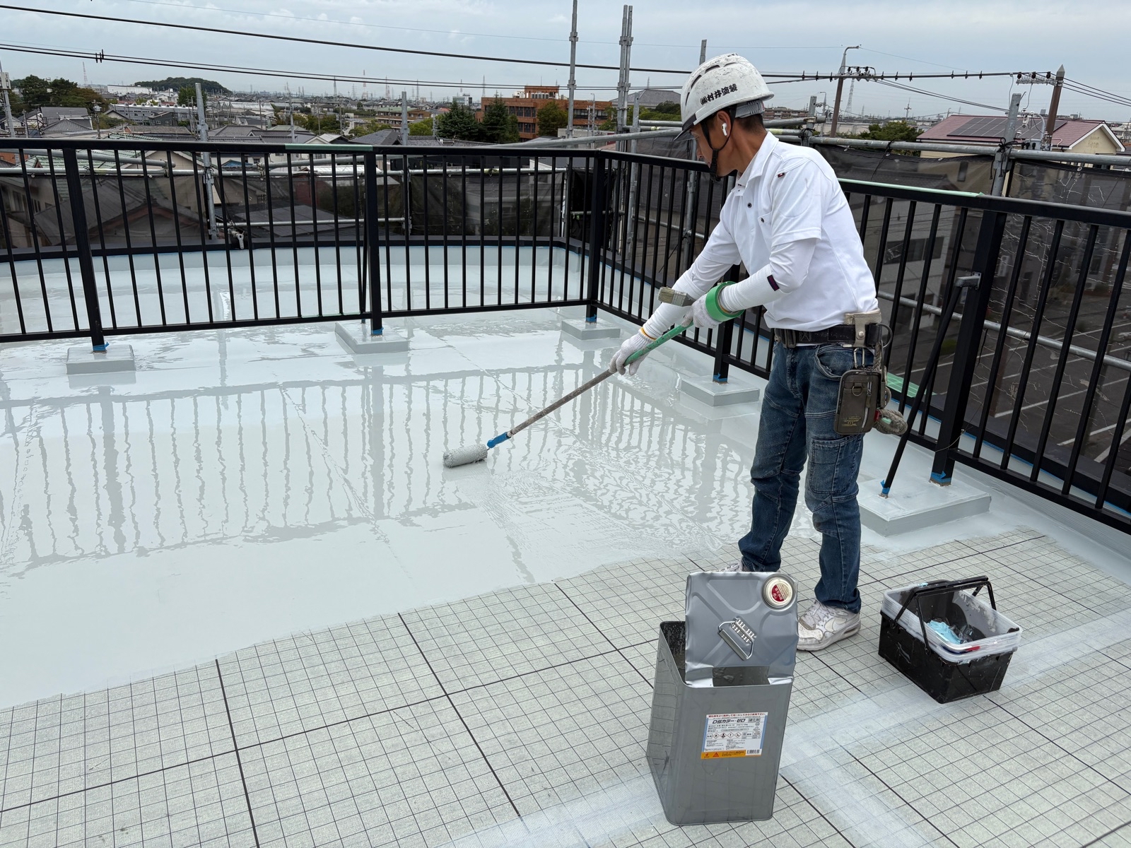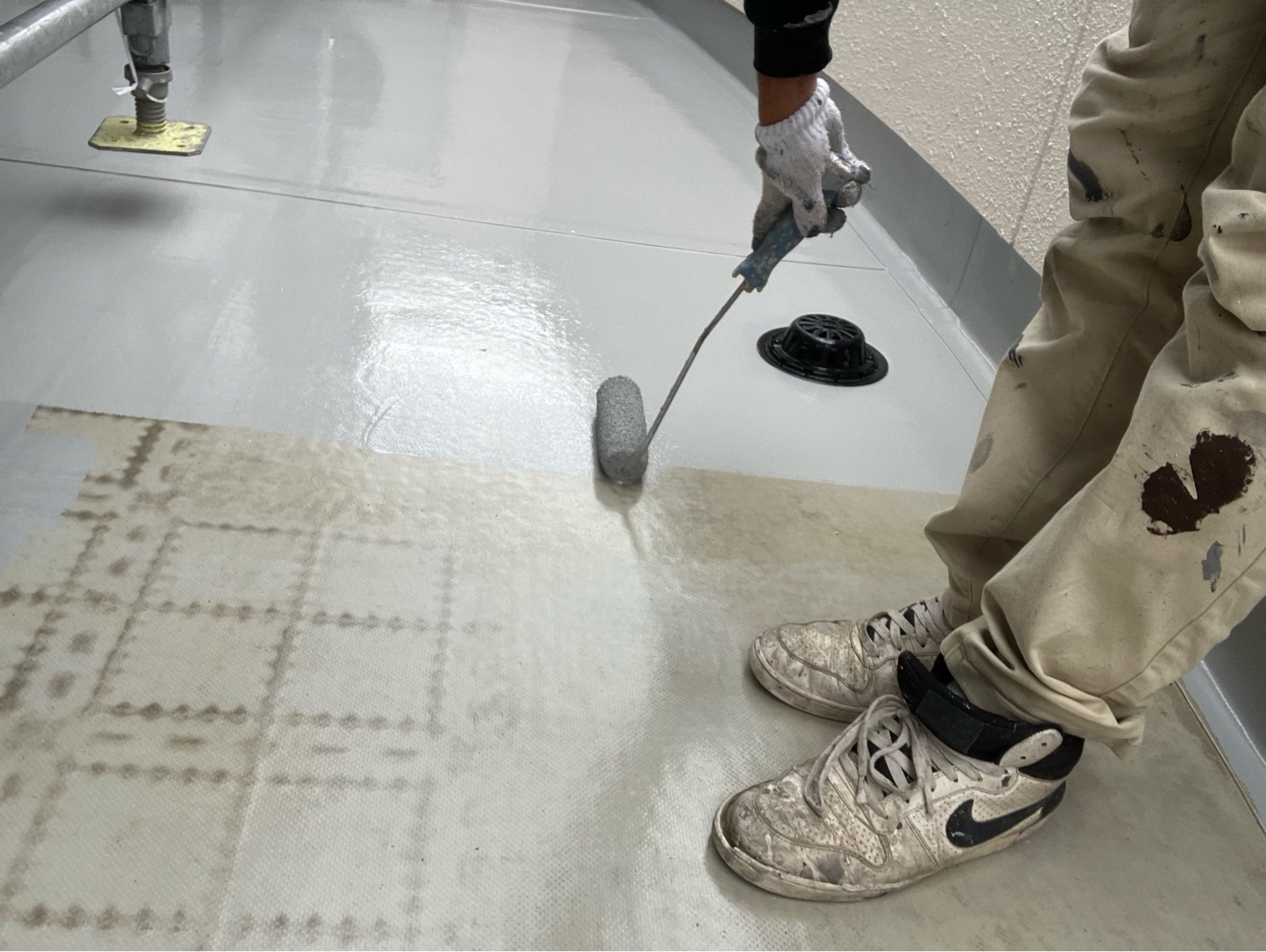 築27年 3階建て住宅アステック無機塗料使用、屋上防水工事通気緩衝シート使用