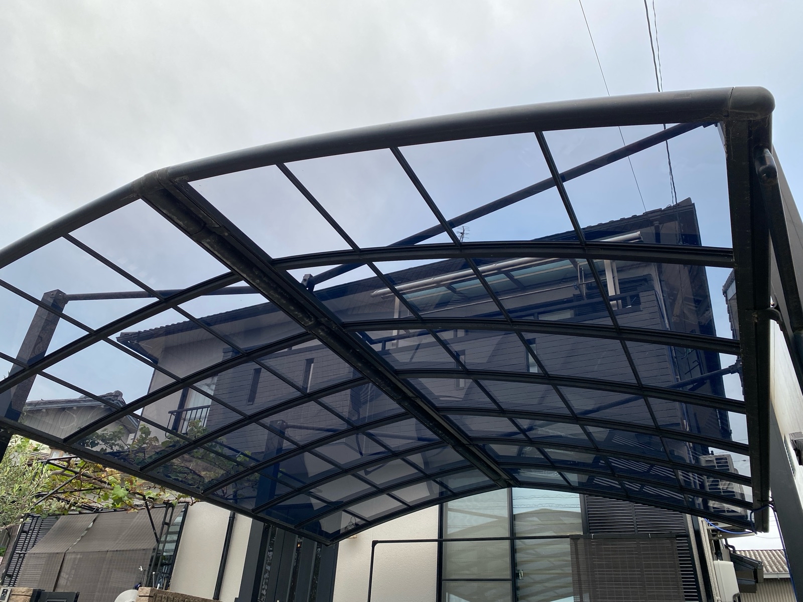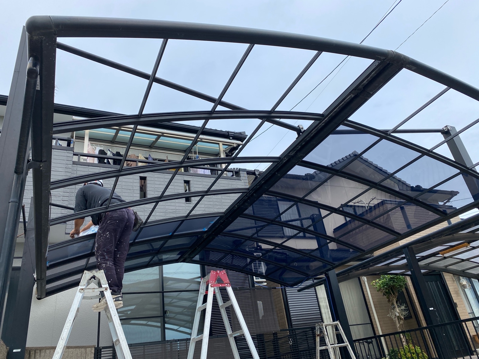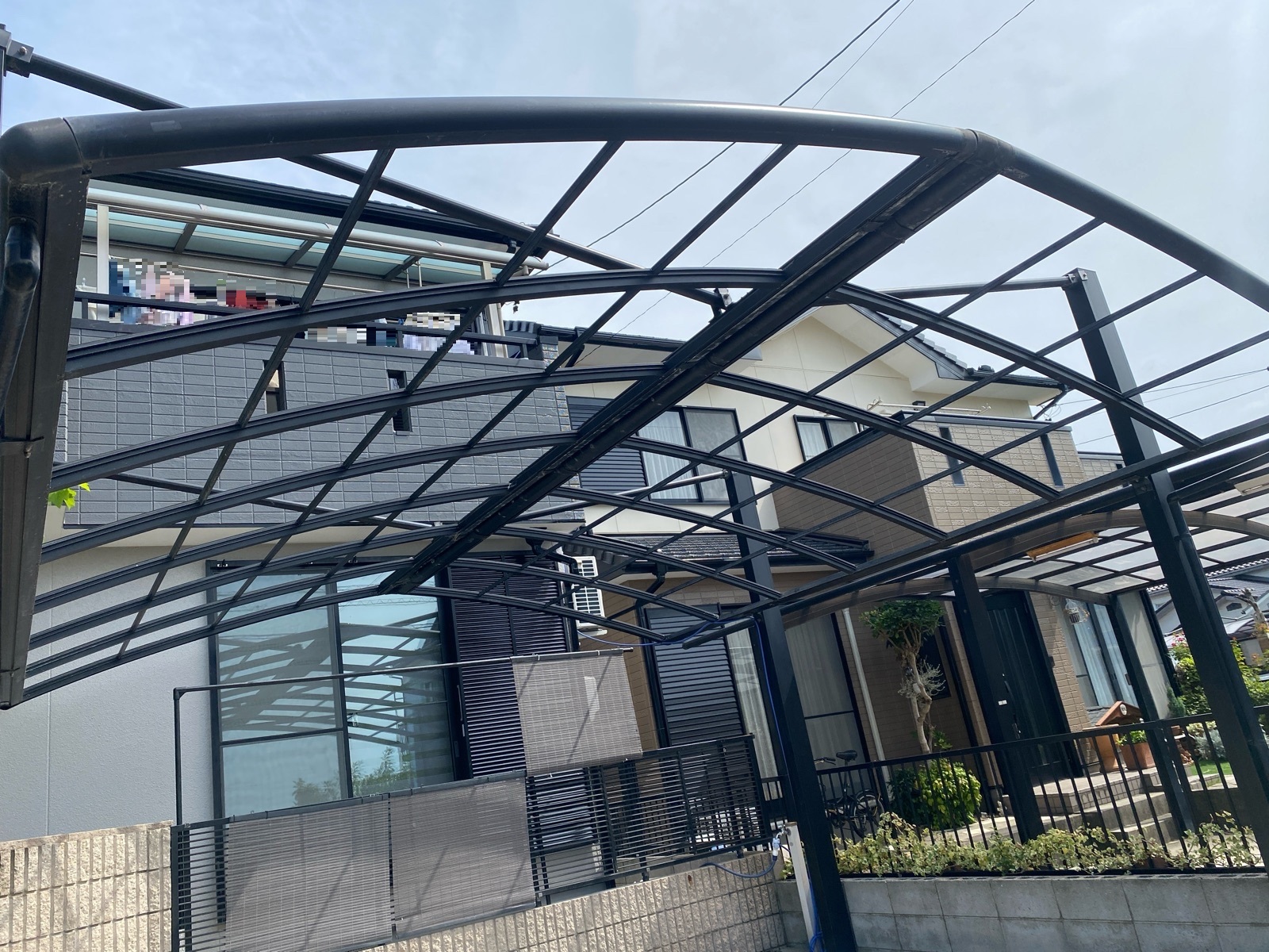 西尾市 駐車場ポリカ屋根交換 グレースモーク(熱線カット)