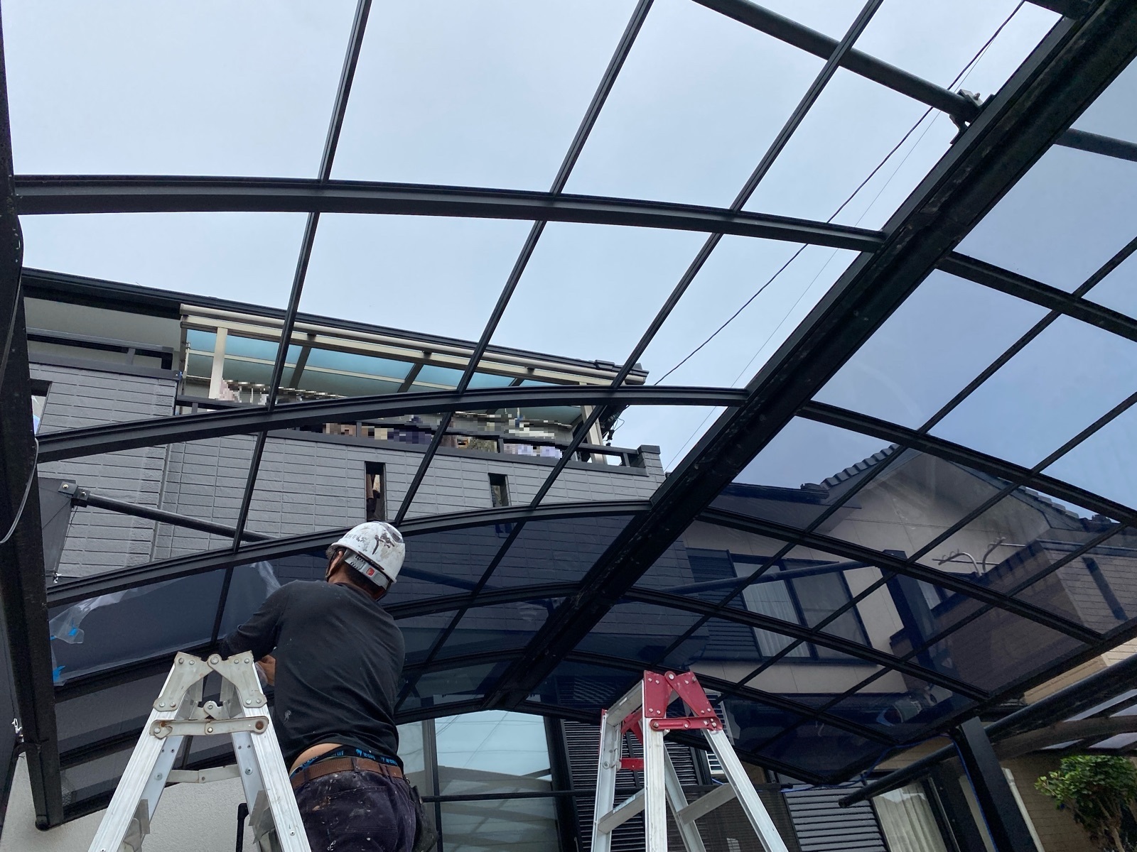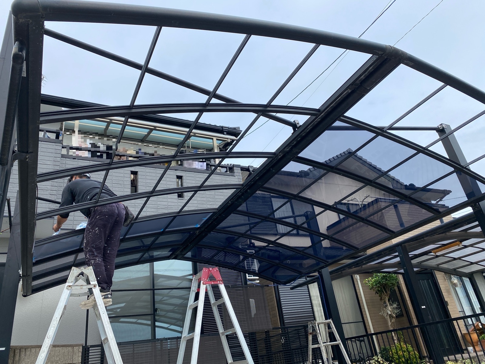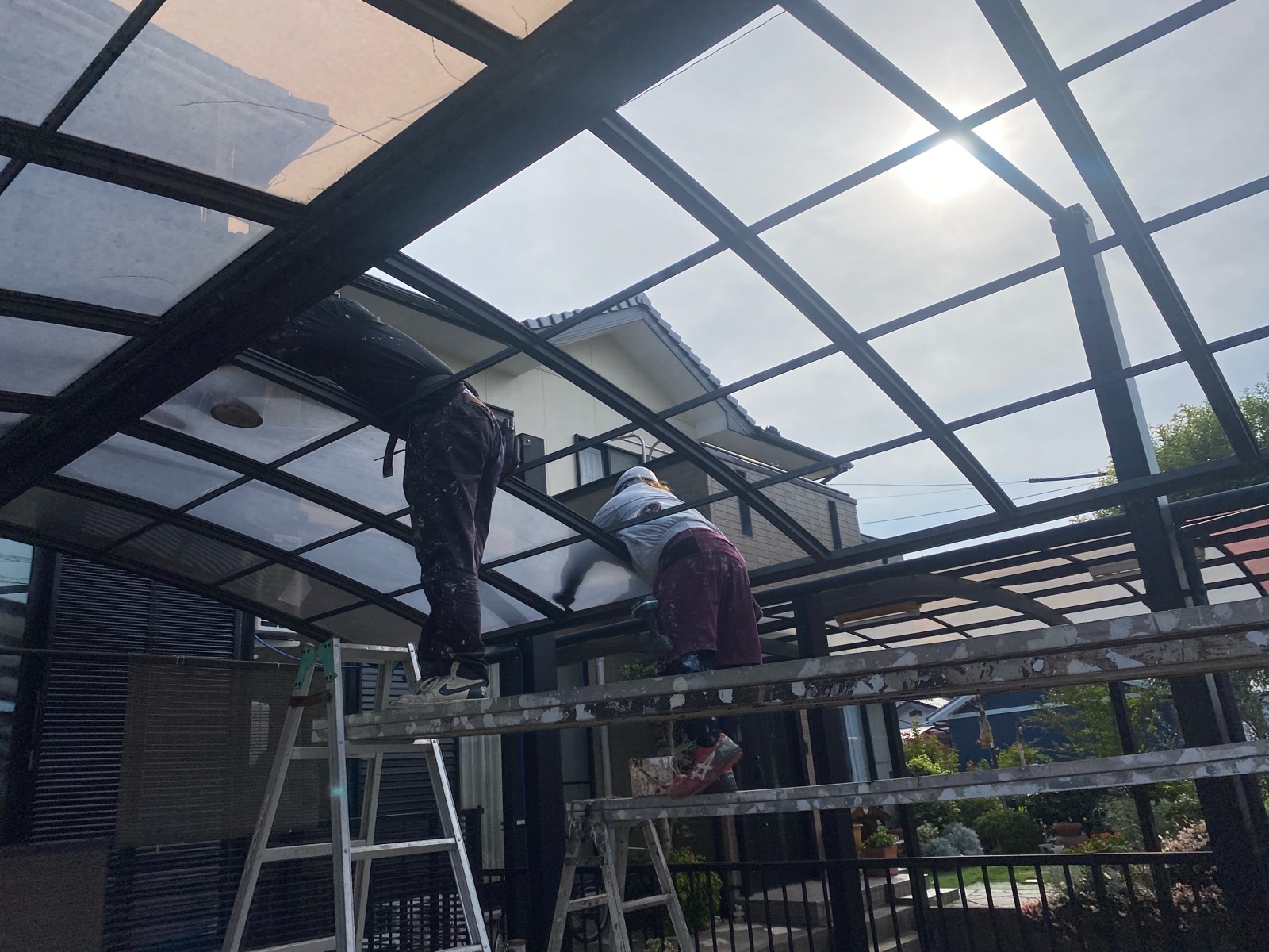 西尾市 駐車場ポリカ屋根交換 グレースモーク(熱線カット)