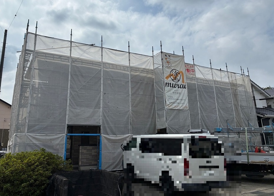 施工内容 仮設足場工事、外壁塗装工事、屋根塗装工事、シーリング工事、看板文字、駐車場文字・ライン引き