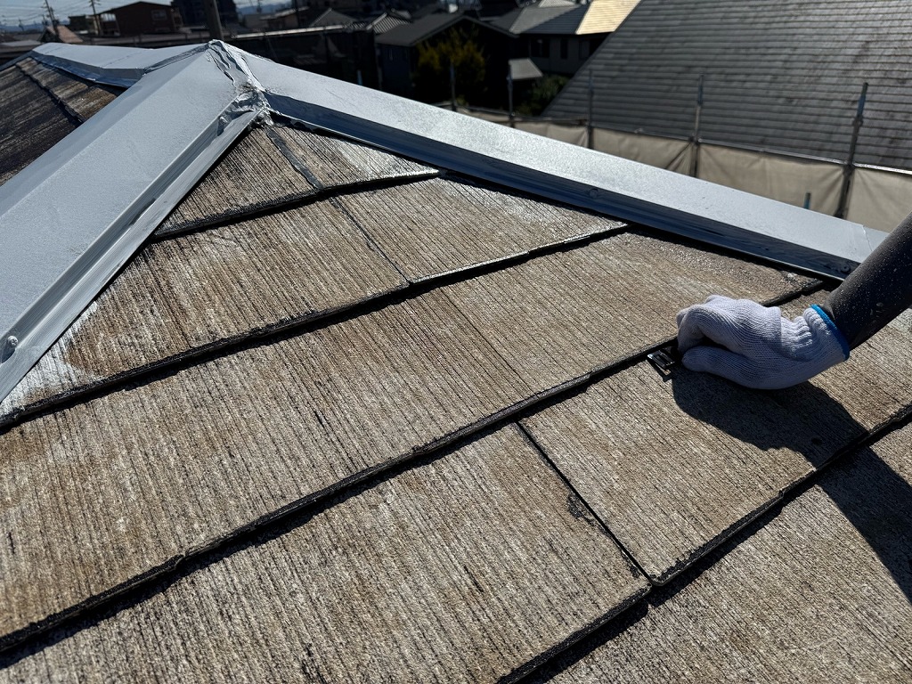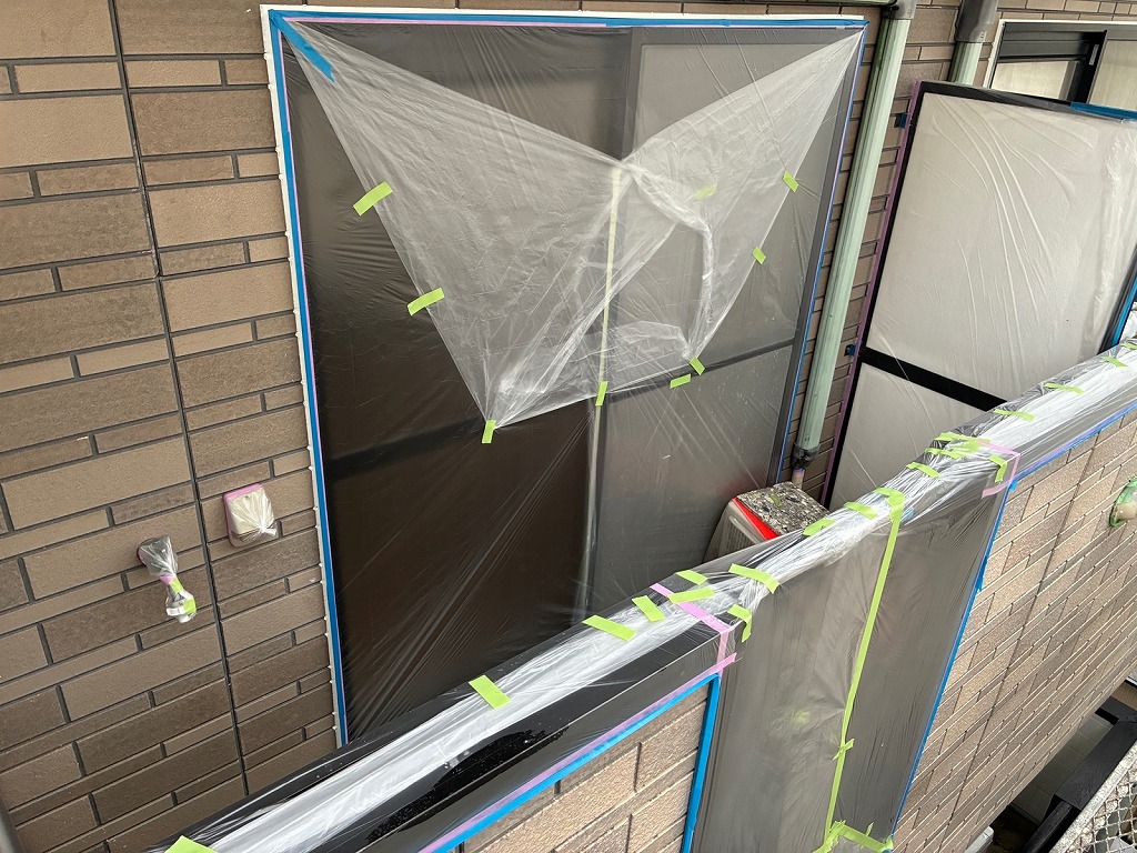 村井塗装の職人がタスペーサー(縁切り)設置中