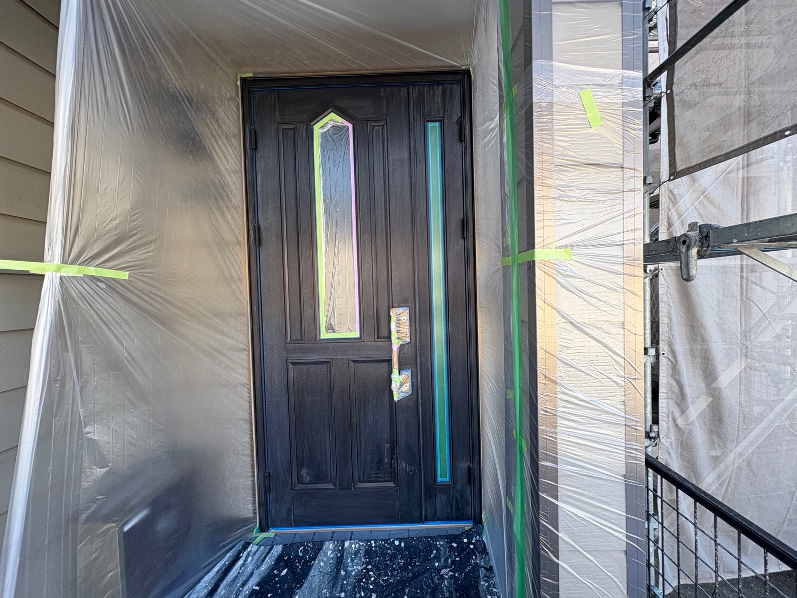 西尾市 アルミ製玄関扉 吹付けで新品同様に フッ素UVコート溶剤 (黒3分艶)