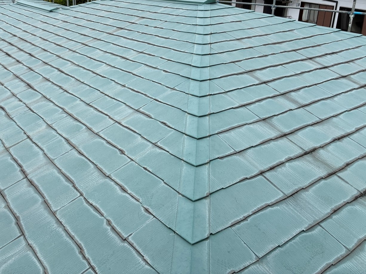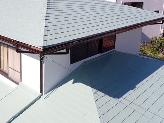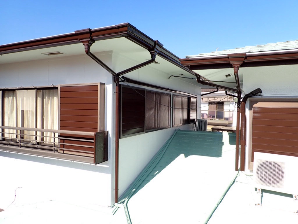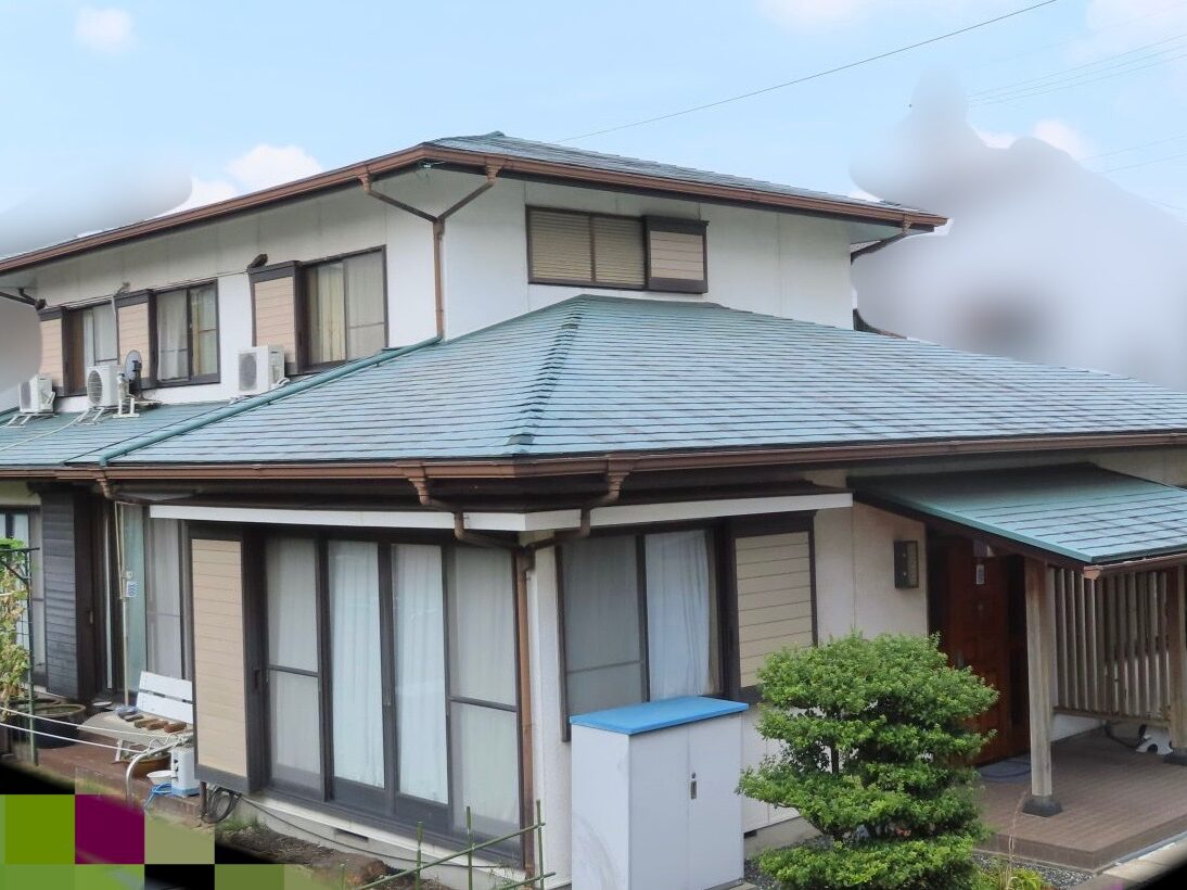 OBお客様 築43年 3回目の塗装 外壁ホワイト×屋根グリーン