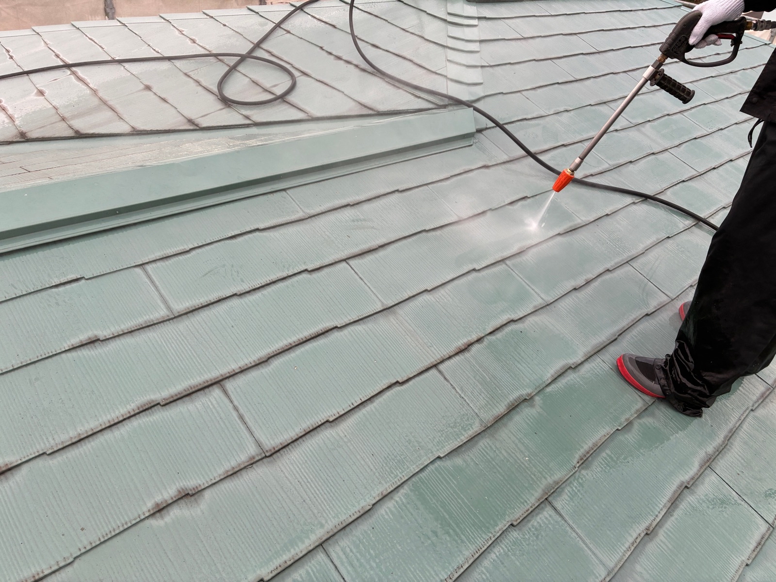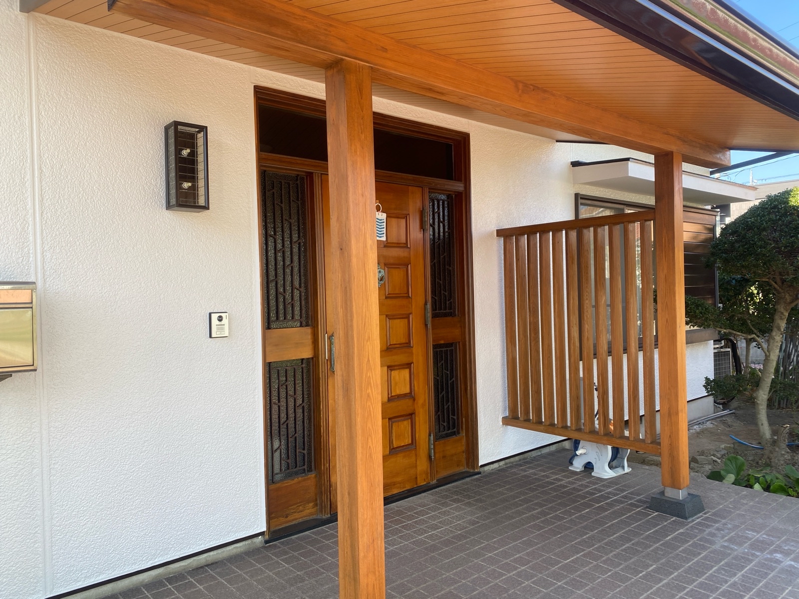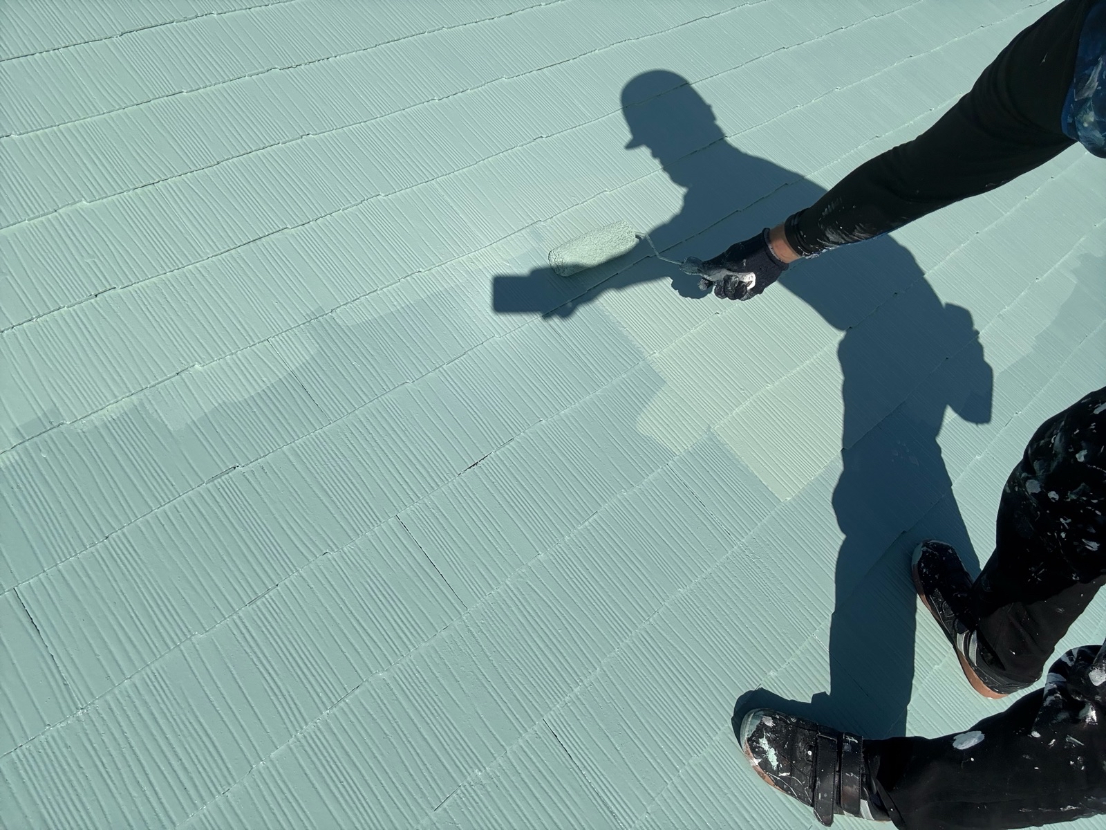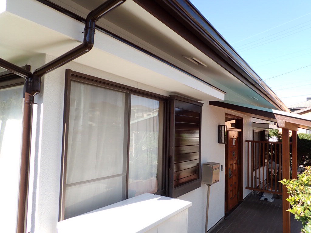 【外壁】超低汚染リファイン1000Si-IR(アステック)9006ペリウィンクルブルー艶有 【屋根】スーパーシャネツサーモSi(アステック)9204ジェイドグリーン 【軒天】溶剤系ケンエース(日本ペイント)N-90 【基礎壁】シリコン浸透ガード(日本ペイント)モルタルグレー 【玄関柱】キシラデコール(大阪ガスケミカル)ピニー 【その他付帯部】スーパーフッソコート(澤政興業)255 |