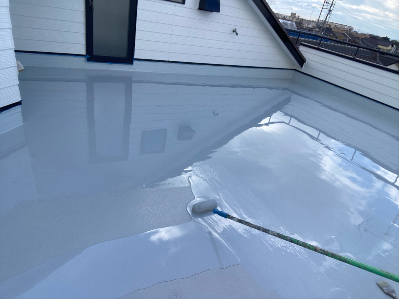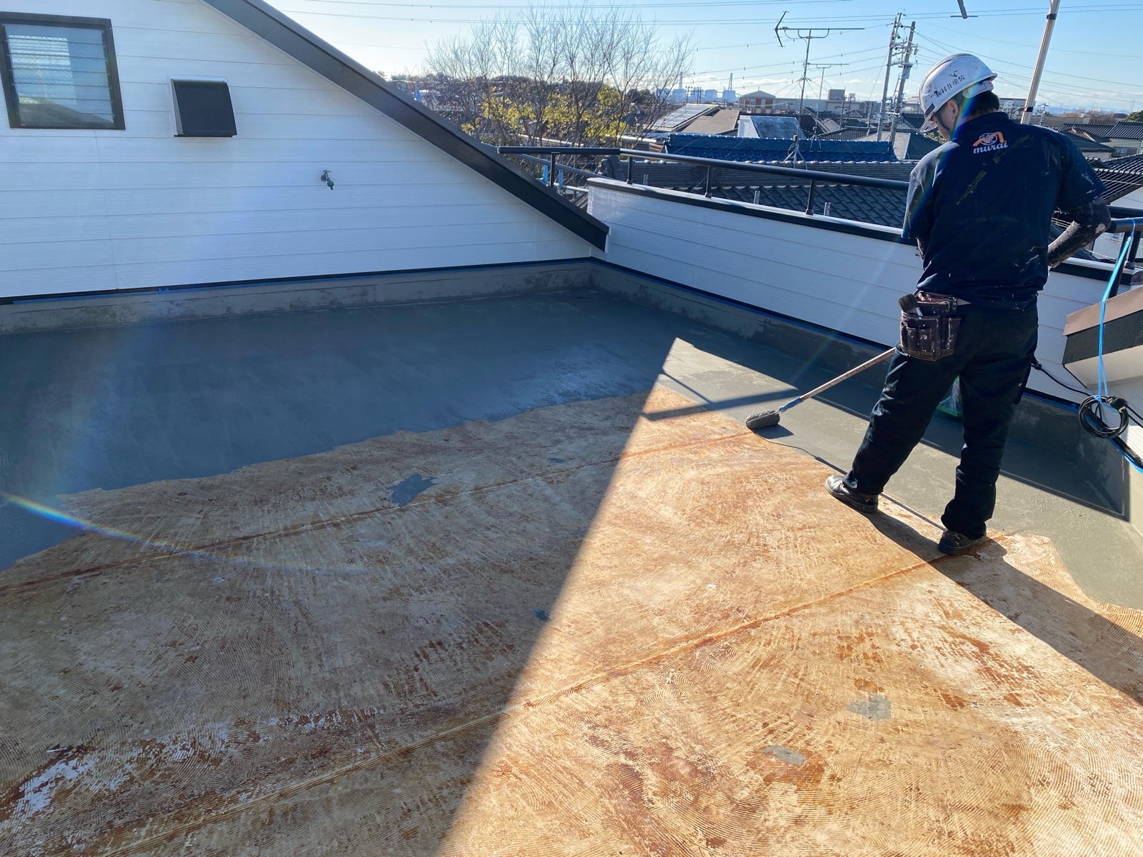 中古住宅を塗り替えで再生!屋上防水シート浮きはウレタン防水(通気緩衝工法)