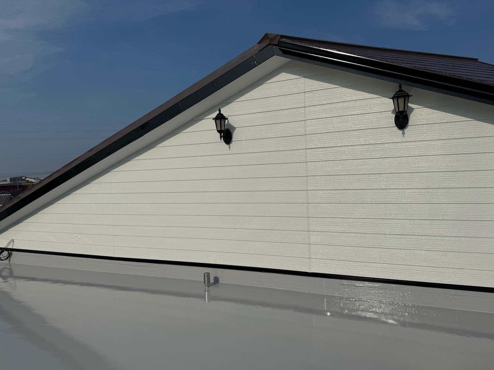 【外壁】超低汚染リファイン無機-IR(アステック)8085オフホワイト(艶有) 【屋根】スーパーシャネツサーモF(アステック)9113ラセットブラウン 【軒天】溶剤系ケンエース(日本ペイント)N-90 【付帯】スーパーフッソコート(澤政興業)黒 【玄関扉】スーパーフッソコート(澤政興業)黒(3分艶) 【基礎壁】シリコン浸透ガード(日本ペイント)モルタルグレー 【屋上、ベランダ床】エクセルトップ(ダイフレックス)ライトグレー |