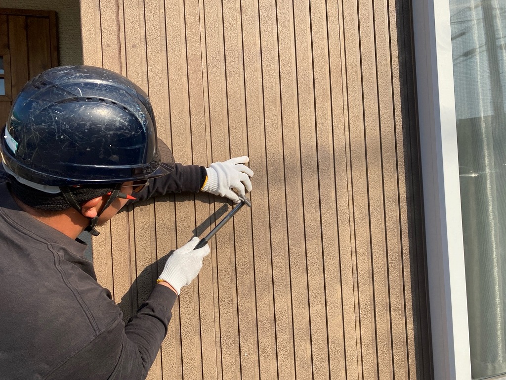この度は村井塗装へご依頼くださり 誠にありがとうございます。 S様は地元情報誌フリモをご覧になりお問合せいただきました。 ご相談内容はベランダ外壁より雨漏り。 工事前は 縦張りサイディングがずれ下がっていました。 上部のつなぎ目は隙間が、下部は水切板金に乗っている状態でした。 上から入った雨水が隙間を伝って内部へ侵入すると、防水紙の劣化、雨漏りの悪化といった流れになりやすいので放置は厳禁です! 工事内容は 外壁をジャッキアップさせ釘打ち補修。 同一サイディングのつなぎ目は高耐久の化粧シーリングで打ち替え、ベランダ床は保護塗装。 下地木部の腐食や、シロアリ被害に遭う前に 補修工事ができて良かったです!! これで安心してお住まいいただけます(^_-)-☆ また何か気になる点などございましたら お気軽にご連絡ください。 本当にありがとうございましたm(__)m |