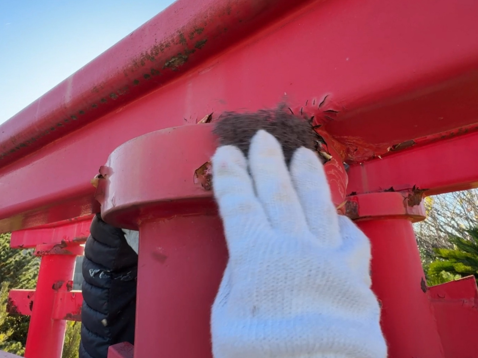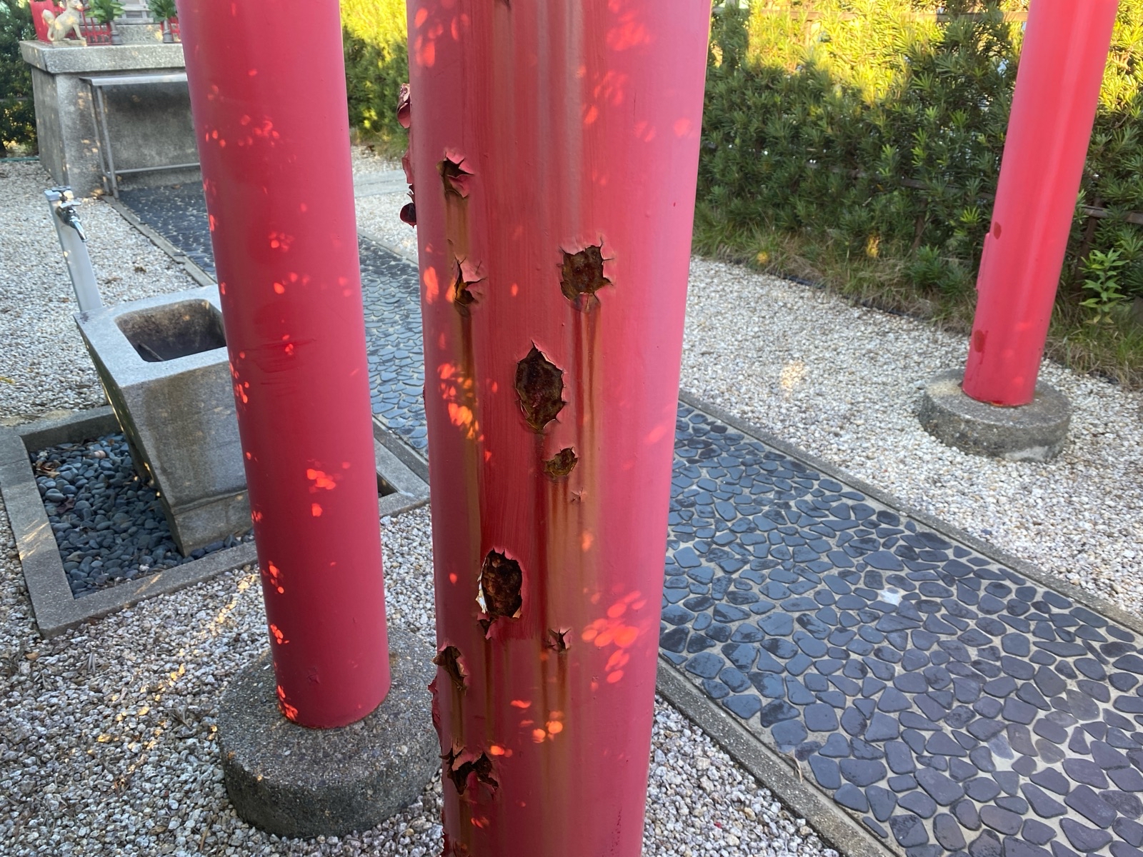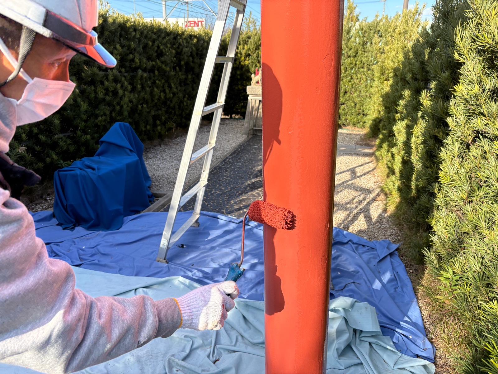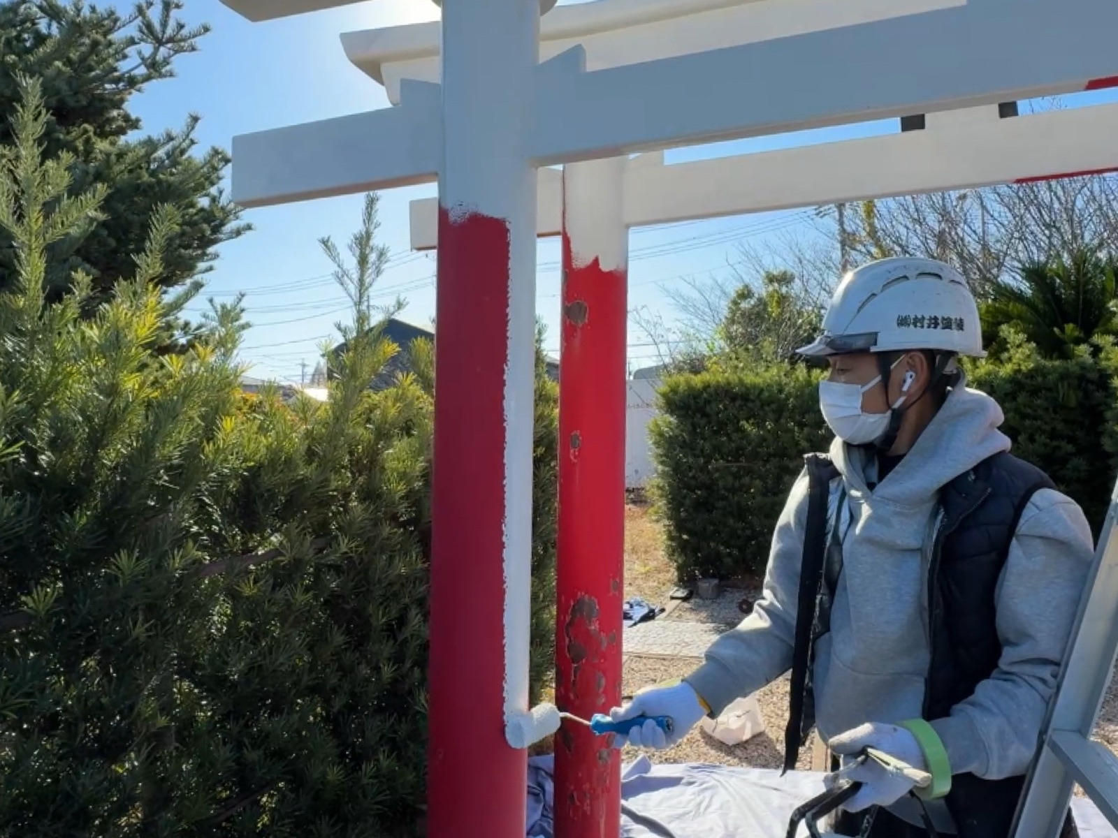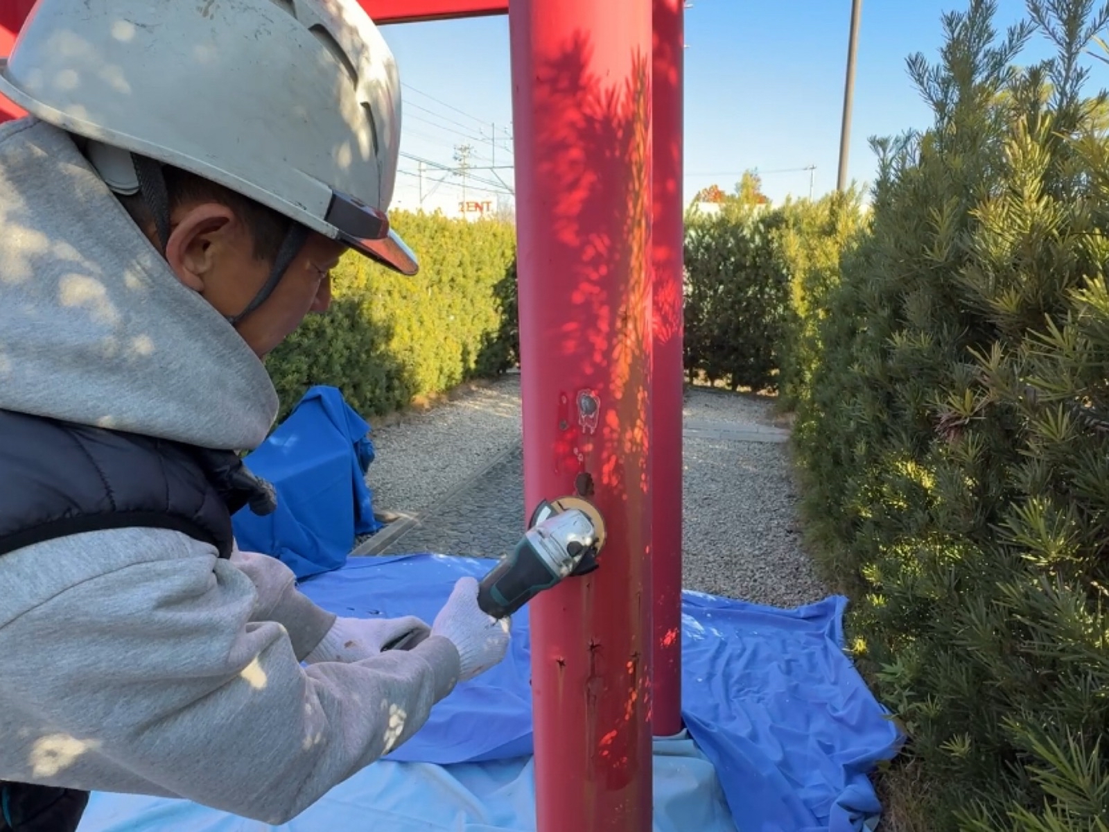 鉄製の【鳥居】塗装 入念なケレンとエポキシ下塗りで長期耐久!!