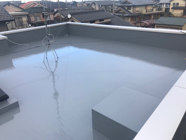 愛知県碧南市『Y様邸』【屋上防水】ウレタン防水通気緩衝工法・FRP階段保護防水・アルミ笠木設置・板金笠木塗装