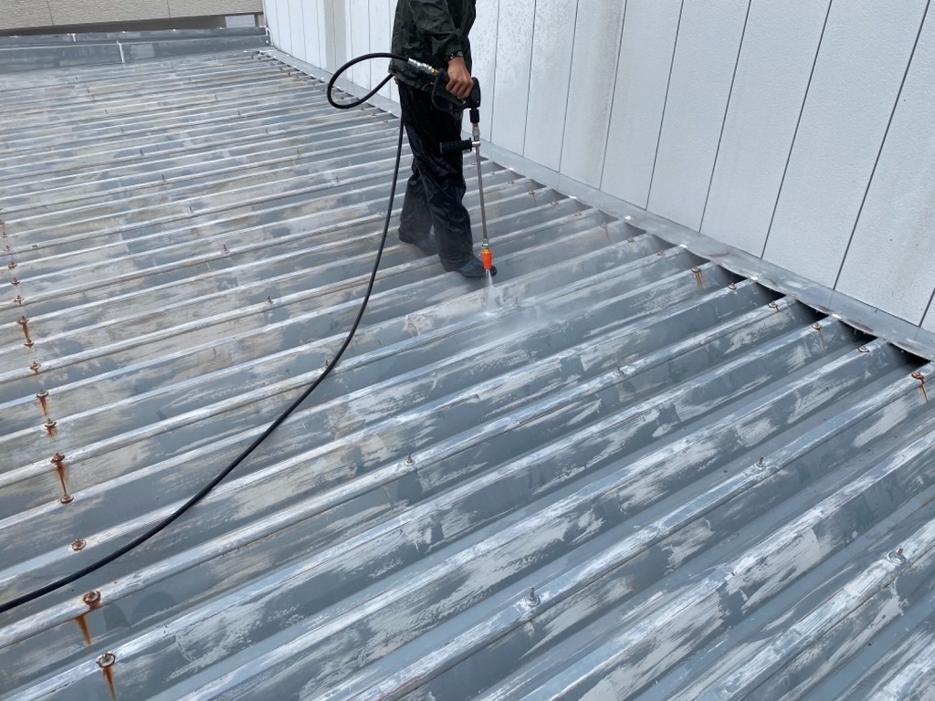 この度は村井塗装へご依頼くださり 誠にありがとうございます。 工場C様からは、雨漏り修繕のご依頼です。 先ず侵入箇所を特定するための調査です。 被疑箇所に水を直接かける【散水調査】を行いました。 雨水の侵入口は見た目だけではわかりずらく、実際に雨漏りの現象を再現して確認する必要があります。 散水調査は侵入箇所をピンポイントで特定できるので、余計な工事をしないで済みます。 雨漏りの侵入箇所を特定後、補修を施し【遮熱塗料】で塗装を致しました。 仕上げはボルトを錆から守るために欠かせない【ボルトキャップ】を取り付けて完成です。 金属屋根は経年劣化で錆が発生します。錆びを放置すると雨漏りの原因になる可能性がありますので、定期的なメンテナンスが必要です。 また何か気になる点などございましたら お気軽にご連絡ください。 本当にありがとうございましたm(__)m |