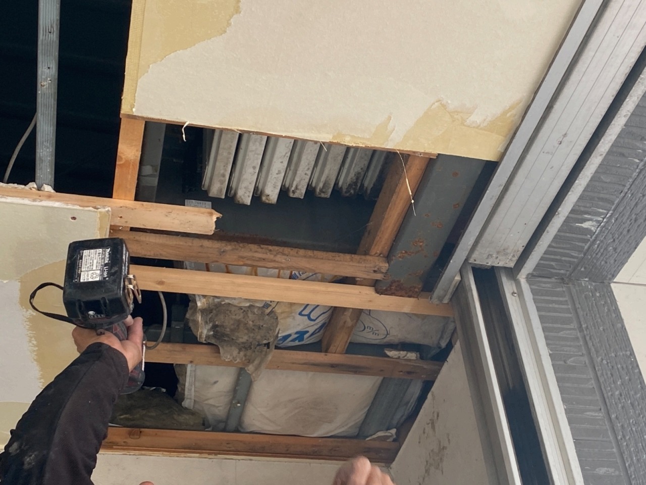 愛知県西尾市『工場C様』雨漏り調査・修繕工事【屋根】ウレタン補修、2液弱溶剤遮熱シリコン塗装 【天井】クロス張り替え工事【換気フード】新設